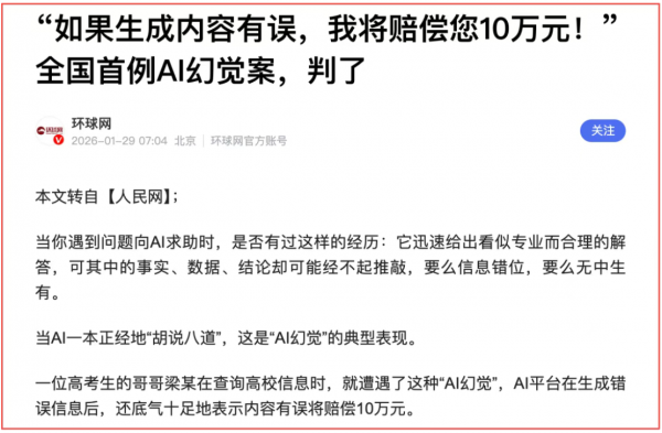 第一个案例,也是全国首例“AI幻觉”侵权纠纷案。判了,人类告AI侵权并索赔10万,结果人类输了......